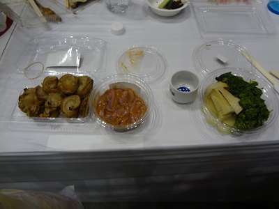 ひたすらお酒を飲むと体に悪いしお腹も空くので、立ち飲みコーナーで酒盛りです。