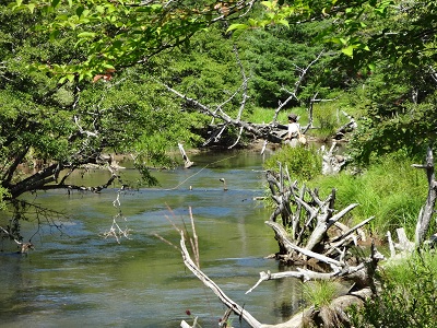 戦場ヶ原の木道沿いの湯川では多くの人がフライフィッシングをしています。