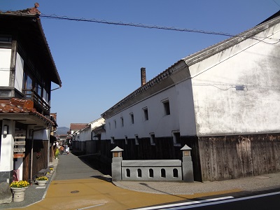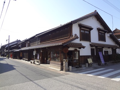 白い漆喰壁に黒の焼き杉板、屋根には赤い石州瓦と、特長のある商家が並んでいます。