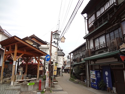 石畳の温泉本通りの両側には古い建物が建ち並んでおり、温泉情緒を醸し出しています。