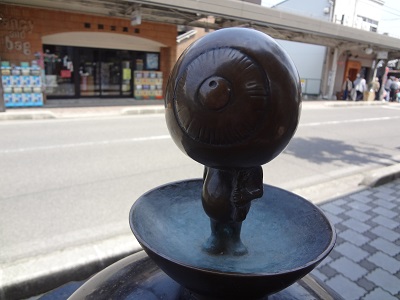 街を歩くと、鬼太郎があいさつをしてくれます。